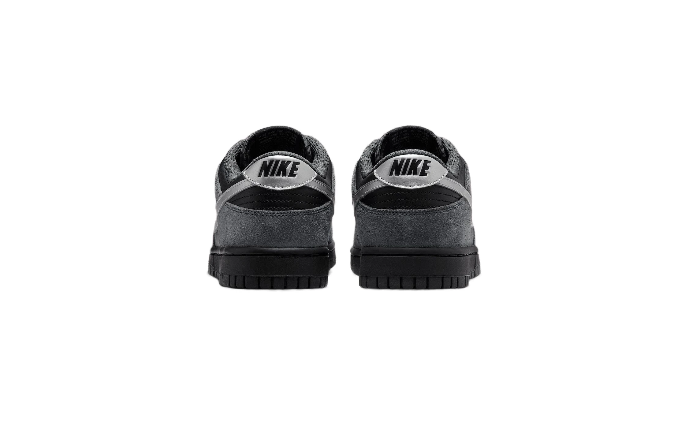 ダンクはこれまでに様々な色が登場しているが、今回はほとんど黒一色だ。ベースはブラックレザーで、そこに異なる色味のアンスラサイト(濃灰色)のスエードオーバーレイを合わせてミニマルながら確かな存在感を放つコントラストを生み出した。