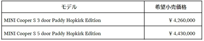BMWジャパンは2021年1月15日、MINI3ドアと5ドアモデルをベースに、伝説のレーシング ドライバーのパディ・ホプカーク氏が、モンテカルロラリーで優勝した時の参戦車両をインスパイアした限定車「MINIパディ・ホップカーク エディション」を、200台限定で販売を開始しました。デリバリーは1月末以降となる予定です。