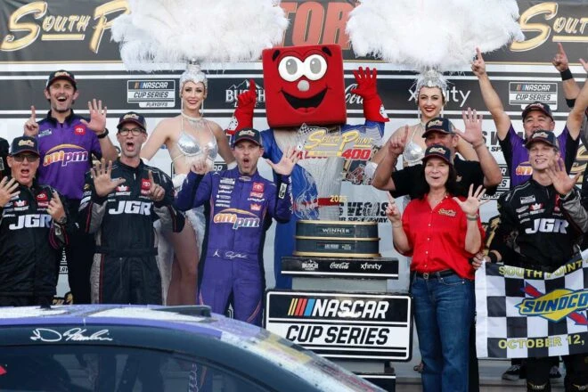 ラスベガス・モーター・スピードウェイで開催されたポストシーズン“Round of 8”初戦、2025年NASCARカップシリーズ第33戦『South Point 400(サウスポイント400)』にてデニー・ハムリン(ジョー・ギブス・レーシング/トヨタ・カムリXSE)が感動の勝利を収め、キャリアにおける重要な節目を迎えることに。