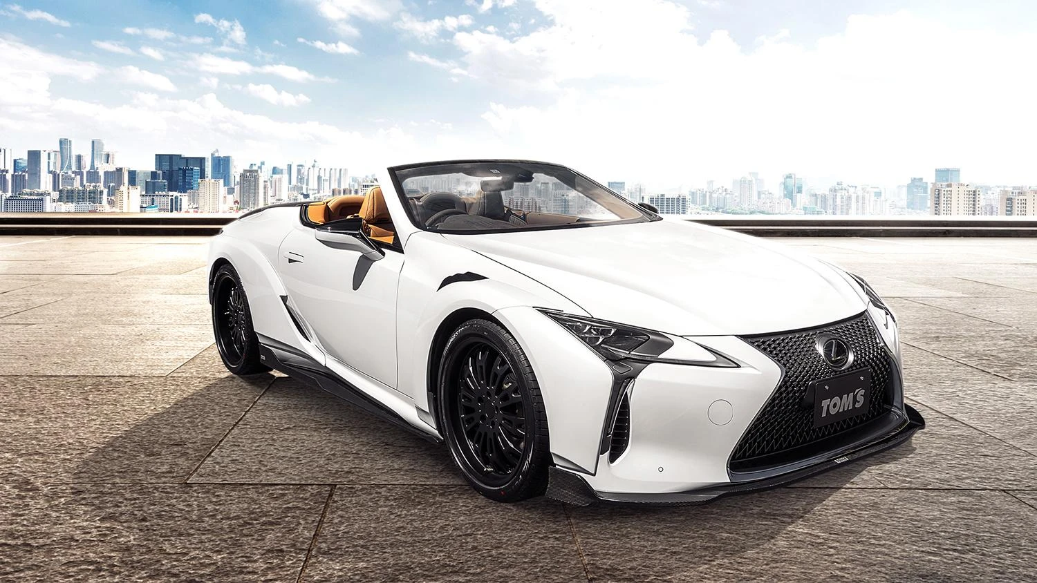 TOM’SレクサスLC500コンバーチブルの主要装備は、フロントディフューザー(ドライカーボン製)、サイドディフューザー(ドライカーボン製)、リヤバンパーディフューザー(ドライカーボン製)、リヤバンパーサイドデューザー(ドライカーボン製)、トランクリッドスポイラー(ドライカーボン製)、ワイドボディキット、マフラーカッター (チタンテール/カーボンテール 選択可)、アッパーパフォーマンスロッド (フロント)、サスペンションメンバーブレース (フロント&リヤ)、ロアボディブレース (フロント&リヤ)、VP-10 21インチ アルミホイール (BK)となる