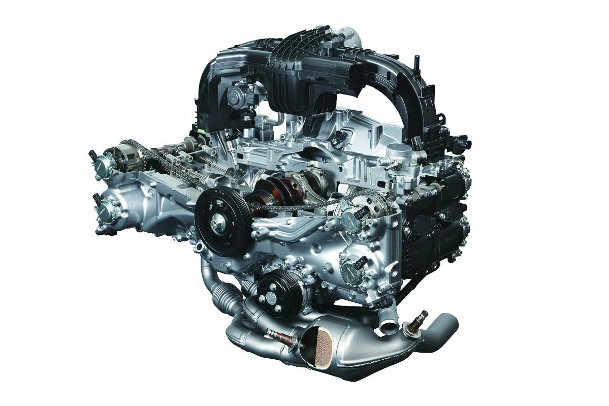 エンジン左右長の大きさから、必然的にショートストロークとならざるを得ない水平対向エンジンの宿命に挑戦し、良好なS/V比をもたらすロングストローク設計として2010年にデビュー。2014年にはスバル初の直噴ダウンサイジングターボとして、FB16DITが登場。レギュラーガソリン仕様で11.0という高圧縮比を実現するために、クランクシャフトを除くほとんどすべての部品が新設計となった。