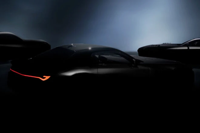 豊田章男会長とサイモン・ハンフリーズ執行役員が登壇する発表会に先立ち、トヨタは新型スポーツ車両のティザーを公開した。そこには3台の車両が並ぶ。