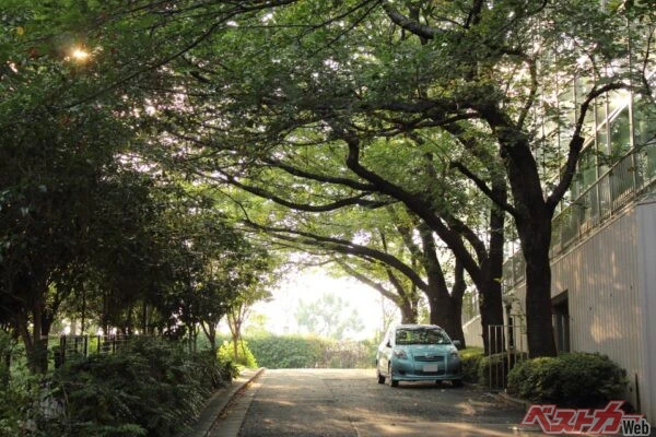 駐車する際、日陰といえども木陰は要注意。落ち葉とともに樹液が滴り落ちてくる可能性がある。